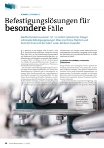 54 konstruktionspraxis 11 | 2023 Mechanik Fluidtechnik E igentlich ist die Aufgabe einer Schlauch- oder Rohrschelle nicht kompliziert: Sie hält die Leitung oder führt sie (bei beweglichen Anwendungen von Schläuchen). In der Praxis sind dafür allerdings vie- le Bauformen und Baureihen notwendig. Denn es gibt eine ganze Reihe von Faktoren, die bei der Auslegung von Schellen für spezielle Maschinen oder Anlagen be- rücksichtigt werdenmüssen, beispielsweise Vibrationen, Druckstärke oder Druckspitzen. Die Hersteller solcher Befestigungslösungen bilden in der Regel diverse Eigenschaftsprofile mit ihrem Stan- dardsortiment ab. Zusätzlich gibt es Baureihen für be- sondere Fälle. Stauff entwickelt seit einiger Zeit auch individuelle Lösungen für einzelne Kunden: Mit dem Online-Service bietet der Hersteller Prototypen und Se- rienbauteile aus dem 3D-Drucker an. Firmen, die indivi- duelle Schellen benötigen, erteilen Druckaufträge mit eigenen Konstruktionsdaten oder entwickeln gemein- sammit demEngineering des Anbieters eine Geometrie. Da Maschinen- und Anlagen immer differenzierter für ihren jeweiligen Einsatzbereich ausgelegt werden, steige die Nachfrage nach individueller Beratung, so die Be- obachtung bei Stauff. Schellen für Schiffbau und mobile Maschinen Einige Schellen, die ursprünglich für eine spezielle An- wendung entwickelt wurden, sind inzwischen im Stan- dard-Programmverfügbar. Dazu gehören beispielsweise Schellen, die für stark vibrierende Anwendungen ent- worfen wurden. Der Hersteller empfiehlt sie für mobile Maschinen, aber auch stationärer Verladeanlagen. Ihre Einsätze sind so gestaltet, dass sie Vibrationen und Ge- räusche reduzieren. Auch für den Einsatz in korrosiver Umgebung, etwa imSchiffbau, hat das Unternehmen schon eine Baureihe entwickelt, unter anderem mit speziellen Ablaufkanä- SCHNELLE SCHELLE Befestigungslösungen für besondere Fälle Stauff entwickelt zusammen mit Herstellern hydraulischer Anlagen individuelle Befestigungslösungen. Über eine Online-Plattform und durch 3D-Druck sind die Teile in kurzer Zeit beim Anwender. Individuelle Rohr- schellen: Wenn es schnell gehen muss, kann der 3D-Druck die wirtschaftlichere Option sein.