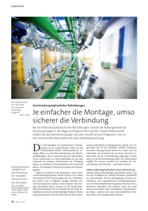 Hydraulik 38 fluid · 06 2023 Verschraubung hydraulischer Rohrleitungen Je einfacher die Montage, umso sicherer die Verbindung Bei der Verbindung hydraulischer Rohrleitungen müssen die Außengewinde der Verschraubungen in der Regel leicht geschmiert werden. Dieser Arbeitsschritt entfällt bei den Rohrverbindungen aus dem Stauff-Connect-Programm. Hier ist das Schmiermittel Bestandteil der Zink-/Nickelbeschichtung. D ie Zuverlässigkeit der hydraulischen Leitungs- systeme ist ein entscheidender Faktor für die Funktionalität mobiler Arbeitsmaschinen. Le- ckagen führen zu Umweltverschmutzung und Maschi- nenstillständen. Diese wiederum können insbesondere in der Landtechnik, wo witterungsbedingt oft nur enge Zeitfenster für einzelne Arbeitsschritte zur Verfügung stehen, zu erheblichen Umsatzeinbußen beim Anwender führen. Die häufigste Ursache für Leckagen sind Monta- gefehler. Stauff hat deshalb bei der Konzeption seines Rohr- verschraubungsprogramms Stauff Connect von Anfang an besonderen Wert darauf gelegt, dass die Verbindun- gen einfach und in möglichst wenigen Schritten zeit- und kostensparend montiert werden können. Ein wich- tiger Bestandteil dieses Ansatzes ist die Stauff-Zink-/ Nickel-Beschichtung. Sie ist im Markt für ihre hohe Be- lastbarkeit und Korrosionsbeständigkeit bekannt. Bisher wenig kommuniziert hat der Full Liner für alle Kompo- nenten hydraulischer Leitungssysteme jedoch eine Ei- genschaft, die für den Hersteller mobiler Maschinen besondere Montagevorteile bietet: Der ‚Sealer‘, also das Gleitmittel, das normalerweise in einem separaten Ar- beitsschritt auf die Verschraubung aufgetragen werden muss, ist Teil der Beschichtung selbst. Ein Arbeitsschritt entfällt. Ein weiterer, nämlich das Anziehen der Ver- schraubung, wird einfacher – und damit sicherer. Höhere Montagesicherheit ohne Schmierung Müssen Rohrverschraubungen geschmiert werden, was bei den Produkten der meisten Hersteller erforderlich ist, unterscheiden sich die Montagewege zwischen ge- schmierten und ungeschmierten Verbindungselemen- ten. Die Drehwinkel können bei gleicher Kraft um bis zu 40Prozent abweichen. Der Monteur kann also nicht einfach und intuitiv einer einheitlichen Montagestrate- gie folgen, sondern muss mit unterschiedlichen Dreh- momenten und Anzugswinkeln arbeiten. Das Schmiermittel ist in die Stauff Zink-/Nickelbe- schichtung integriert. Bilder: Stauff „Stauff hat bei der Entwicklung von Produkten immer die Situa- tion des Anwen- ders im Blick.“ André Degen, Appli- cation Engineer bei Stauff