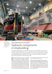 14 fluid · 04 2024 Special requirements in the marine industry Hydraulic components in shipbuilding The safety of the hydraulic line system plays a key role in shipbuilding. Leaks and unintentional machine downtimes can cause significant economic losses as well as environmental damage with far-reaching consequences. The Damen Shipyards Group has been using Stauff products for many years and, some years ago, even replaced its welded joints with the Stauff Form EVO forming system. IThe Damen Shipyards Group occupies an important position in international shipbuilding: 11,000 employees, an annual turnover of around €2.5 billion, 35 shipyards in 20 countries and over 6,000 ships built in just under a century are impressive figures for its success. Founded in 1927 by Jan and Marius Damen in Hardinxveld-Giessendam (Netherlands), the shipyard’s product range spans work boats and tugs, including the well-known “Shoalbuster” and “MultiCat” series, to ferries, naval vessels and mega yachts. The company’s headquarters is in the Dutch town of Gorinchem. Maintenance, repair and the new construction of ships up to 90 metres in length takes place at the company’s site in Hardinxveld. This site also supplies other sites with hydraulic line systems. From welded to detachable tube connectors Marcel De Bruin, Piping Manager at Damen, has traditionally been an advocate of welded tube connectors. This method offers almost never-ending durability, but requires experienced skilled personnel, takes a lot of time, and is less flexible when it comes to repairs or conversions. He was sceptical of detachable connectors. However, the desire for greater flexibility and increased speed of work led to a rethink in 2018. Ships are built, maintained and repaired at the Damen Shipyards Group site at Hardinxveld in the Netherlands. Images: Stauff Hydraulics