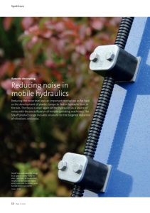 fluid · 05 2024 13 Spektrum In recent years, most manufacturers of compact and mini diggers have developed a range of machines with electric drive in parallel to their traditional product range. At the outset, these electric diggers were regarded sceptically, but have now captured their market despite their higher procurement prices. There are many reasons for this: Operating these machines produces neither exhaust gases nor noise emissions, and their performance is now almost equal to that of conventionally powered machines. This profile of properties is especially sought after on inner-city construction sites. It is therefore to be expected that electric drives will prevail in ever higher performance ranges, and not just on diggers. Noise reduction by acoustic decoupling is also an issue with other mobile and electrically driven machines – for example with municipal vehicles. In agriculture, the needs of the user are particularly important: it is easier to work with greater focus in an electric tractor with noise-reduced hydraulics. Two sources of hydraulic noise emissions With conventional diggers, the internal combustion engines (specifically: engine and exhaust noise) are the number one sources of noise. This is followed by operating noises that occur, for example, during excavation – for example, when the digger bucket hits stony ground. Generally, the hydraulics are only the third most common emitter of noise. The order is different with construction machinery fitted with electric drives. Their motors operate quietly, and the operating noises occur only occasionally. This places the focus back on the hydraulics as a source of noise. Basically, a distinction is made between two sources of hydraulic noise emissions. The primary source is the operating noise of the pump. In addition to the noise of the drive itself, the movement of the hydraulic fluid, triggered by the pump, including the pressure pulses in the oil circuit, tends to dominate. The influence of this source can be reduced by low-pulsation or low-noise pumps, and further minimised by damping elements, such as rubber-coated metal rails. This addresses another important solution: acoustic decoupling. It concerns reducing the spread of structure-borne sound. Acoustic decoupling This approach addresses a noise source that contributes more to the sound level than the primary emission, especially in hydraulics. The pumps and the hydraulic fluid that moves or pulsates due to the actuators in the system cause surrounding components, such as lines and containers, to vibrate. This can be felt as vibrations and subsequently as sound emissions. These noises are not only propagated in the hydraulic system along the widely branched lines, but are also amplified by causing other system components and, if fixed, adjacent components to vibrate. Converted into airborne sound, they then reach the human ear as an unpleasant roar. Plastic clamps to fasten hydraulic lines were developed by Stauff, the German developer and manufacturer of components for hydraulic line systems, some sixty years ago. Among other things, their aim was to dampen vibrations and noises in the hydraulic system, and they have significantly helped with sound decoupling. The basic version of these plastic clamps reduced In general, plastic clamps can also be used for the protection or routing of electrical cables and cable bundles.